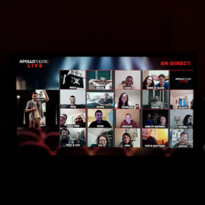 Un spectacle en live-streaming, oui, vous avez bien lu. Je suis tombée sur l’initiative de l’Apollo théâtre à Paris. L’idée est d’assister à des spectacles en direct depuis chez nous ! L’artiste se produit bien sur la scène du théâtre mais, autour de lui, il n’y a personne… Enfin si, il y a des écrans ! Il interagit avec un public virtuel. J’étais curieuse et j’avais envie de me faire ma propre idée sur ce nouveau genre de spectacle. J’ai donc réservé ma place (10€) – ou plutôt mon lien – pour le one-man-show de Naïm. Je ne le connaissais pas avant. Une belle découverte !