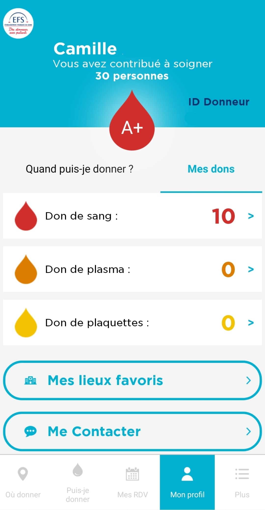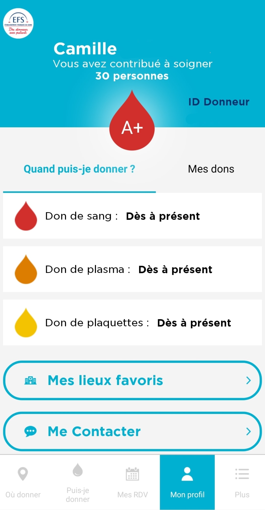 Je donne depuis mes 18 ans, et j’en ai 42 aujourd’hui. Je valide l’appli à 100 %, et j’aime particulièrement l’indication du nombre de vies sauvées, j’en suis à + de 100.