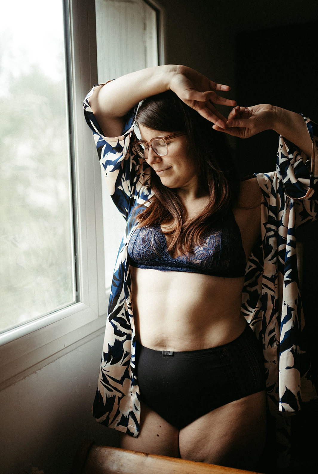 Selon moi, l’avantage majeur de Pop’line est de proposer des créations en semi-mesure. Je m’explique. Claire ne fait pas de sur-mesure (cela serait bien trop compliqué pour elle toute seule !) mais, elle propose d’adapter pour chaque cliente ses modèles existants. Par exemple, concernant mon soutien-gorge bleu : Claire a assemblé la taille M pour le bonnet et L pour l’élastique. J’étais entre deux tailles et cette combinaison est totalement parfaite pour ma poitrine.