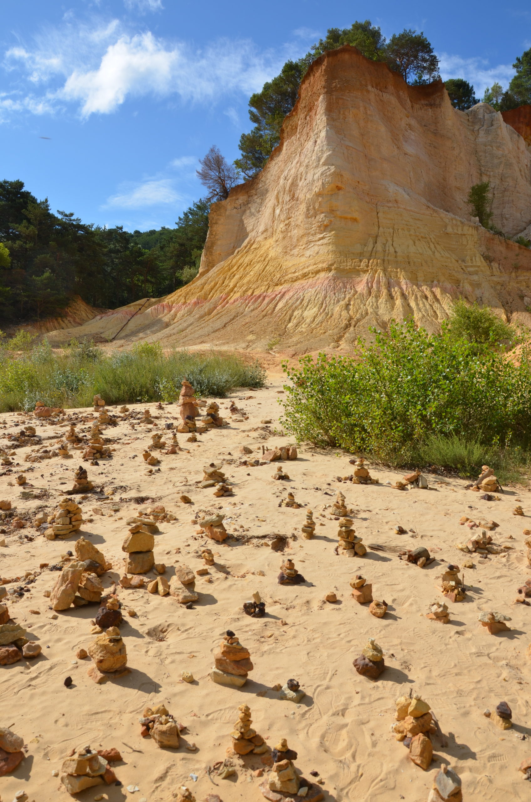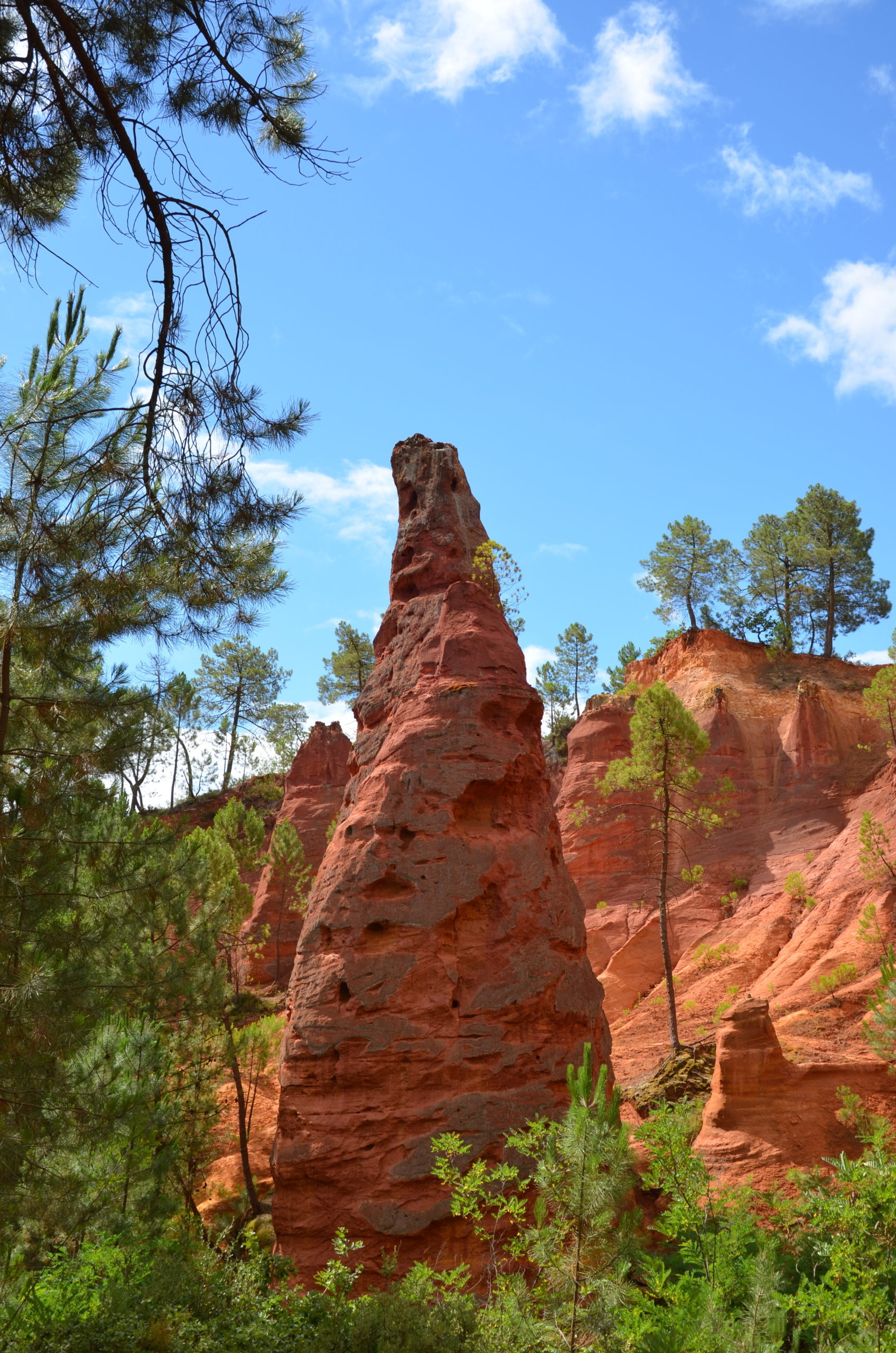 - Les ocres du Luberon. Impossible de venir ici sans découvrir les carrières d’ocre. Direction Rustrel à l’est de la région. C’est là-bas que se trouve le Colorado provençal. Un site digne d’un parc américain. Bon, ce n’est pas aussi grandiose que le Grand Canyon mais la couleur y ressemble ! Choisissez le 2ème circuit, celui des Belvédères. Il est plus long mais vraiment facile. Nous avons mis 1h15 pour faire ce parcours depuis le parking, sans courir. Comme pour l’abbaye de Sénanque, je vous conseille d’y aller tôt (moins de chaleur et moins de monde). Côté tenue, nous avions mis de vieux baskets. Verdict : nos chaussures n’ont pas du tout pris la couleur ocre de la terre ! Elles étaient super propres à la sortie. Au Sentier des Ocres de Roussillon, c’est un peu plus coloré mais pas de tâches non plus. En résumé, aucune crainte à avoir pour vos affaires mais ne portez quand même pas du neuf et du blanc (sauf si vous aimez vivre dangereusement ahah). Et concernant le Sentier des Ocres, allez-y même si vous avez fait le Colorado provençal à Rustrel. Commencez d’ailleurs par Rustrel puis Roussillon : le site est plus grand à Rustrel mais les couleurs sont plus vives à Roussillon. Une fois le Sentier des Ocres terminé, baladez-vous dans Roussillon. Un village où les façades des maisons sont dans les tons jaunes, oranges et rouges… Ça change car dans le Luberon, on retrouve plutôt de la pierre sèche.