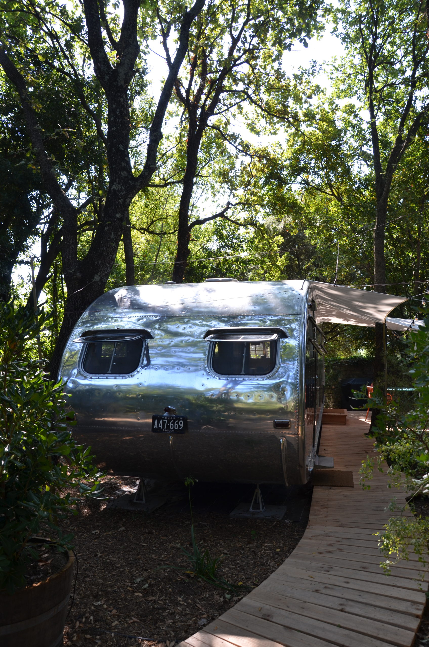 Non, vous ne rêvez pas, j’ai dormi dans cette caravane, c’était fin août. Je n’avais jamais dormi dans une caravane américaine. Une première pour moi. J’ai découvert complètement par hasard cette location. C’est simple, je cherchais les hébergements atypiques près de chez moi et je suis tombée sur le site de l’Auberge du Cèdre. Celle-ci se trouve dans le petit village de Lauret, à 45 minutes de Montpellier. Françoise et Lutz sont les propriétaires du lieu. J’ai eu un véritable coup de cœur pour leur projet de caravanes américaines vintages. Ils ont terminé les aménagements juste avant l’été. Je faisais donc partie des premiers locataires de la belle Ella : c’est le nom de la caravane dans laquelle j’ai passé la nuit. Je lui consacre deux sonores en début de cet article. Vous les avez écoutés ? Je vous explique d’ailleurs d’où vient son nom. Si vous n’avez pas encore l’info, remontez un peu dans cet article pour lancer l’un des sonores… Puis revenez découvrir les photos ci-dessous. Décollage garanti vers l’Amérique des années 50 ! Eh oui, Ella est une caravane de 1951, arrivée en France en 2016.